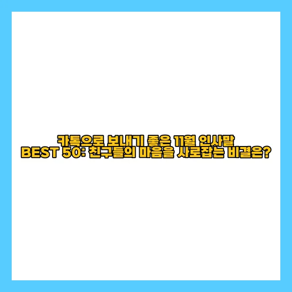 11월이 다가오면, 마음 따뜻한 인사말로 친구들에게 감동을 전할 좋은 기회가 펼쳐집니다. 특히 카톡으로 보내기 좋은 인사말은 소중한 유대감을 더욱 깊게 만들어 줍니다. 이번 포스팅에서는 가장 감동적인 11월 인사말을 모아 친구별로 맞춤 추천해 드립니다. 또한, 전달 방식을 활용한 유효한 팁과 인사말을 더욱 특별하게 만드는 방법도 소개합니다. 소중한 사람들에게 잊지 못할 인사를 전하고 싶으시다면, 함께 이 순간을 만들어보시기 바랍니다.